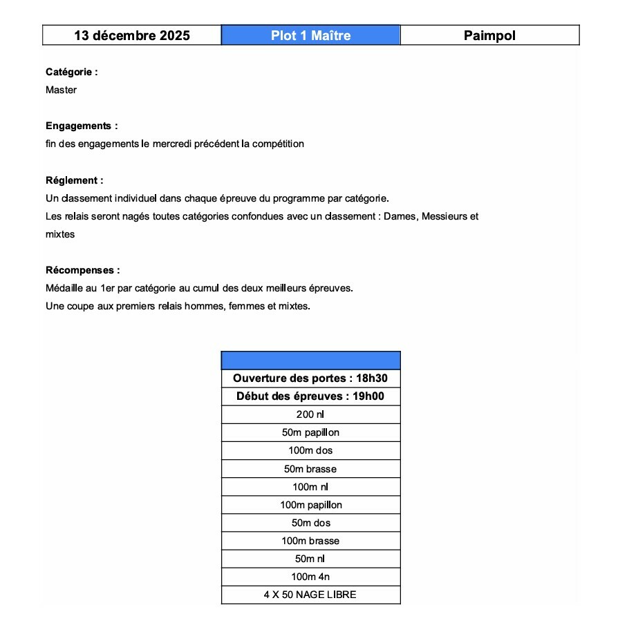 compétition maitres Plot 1 à Piscine Islandia de Paimpol